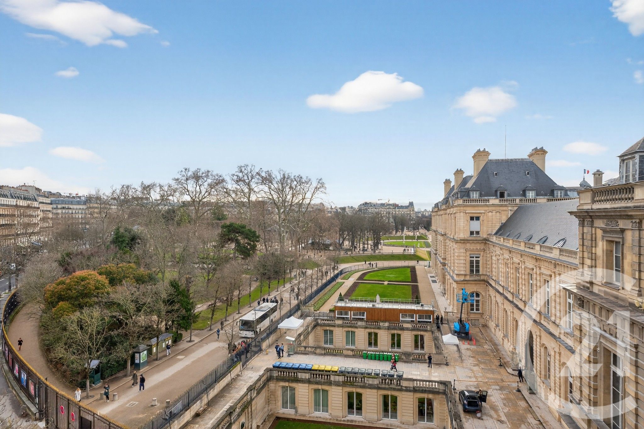 Baigné de lumière et bénéficiant d'une vue dégagée exceptionnelle sur le Jardin du Luxembourg et à deux pas du Sénat, il se compose actuellement d'un séjour traversant avec cuisine ouverte entièrement aménagée et équipée, de deux chambres et d'une salle d'eau avec WC.